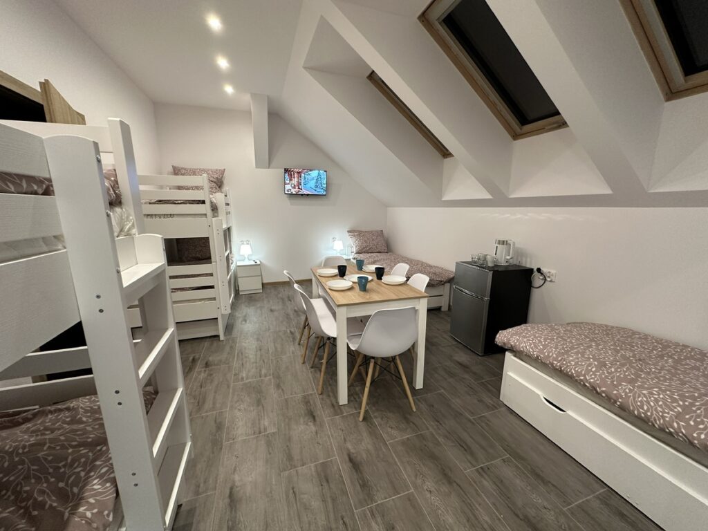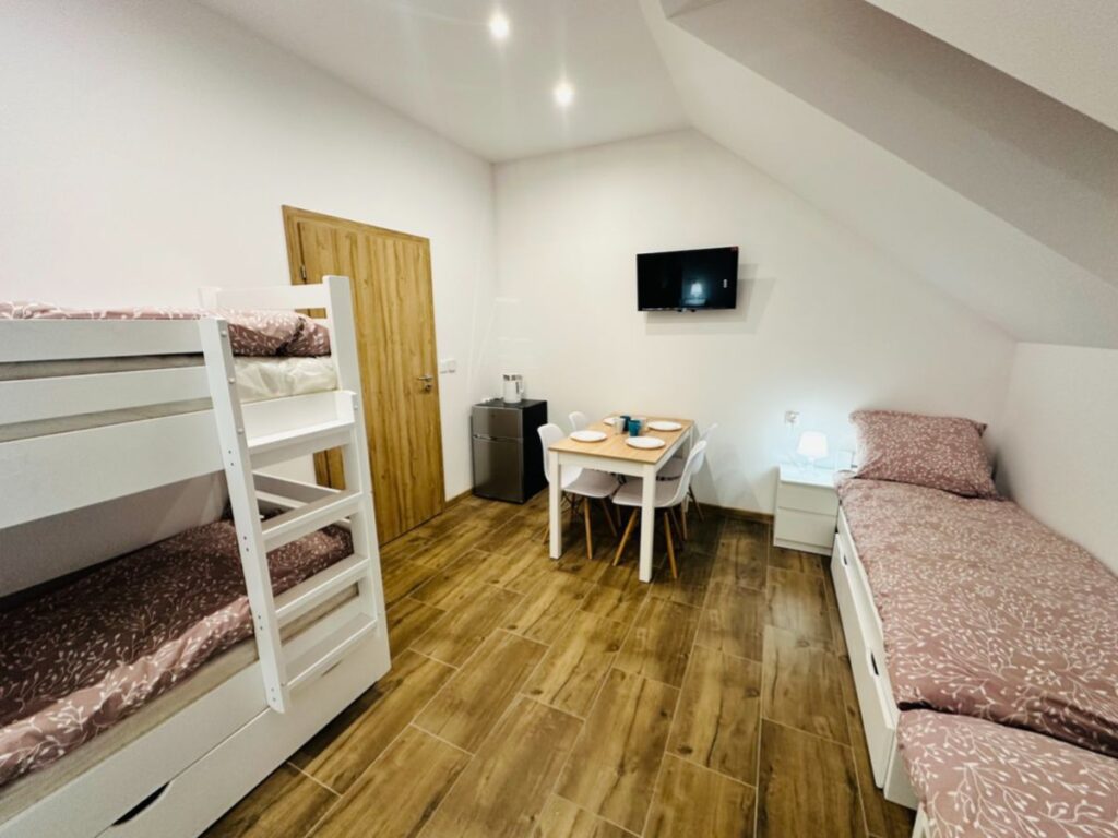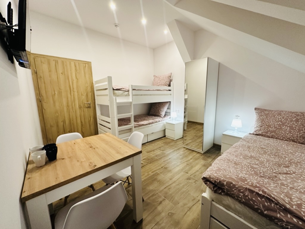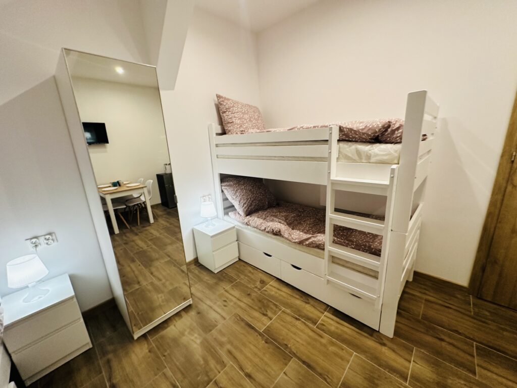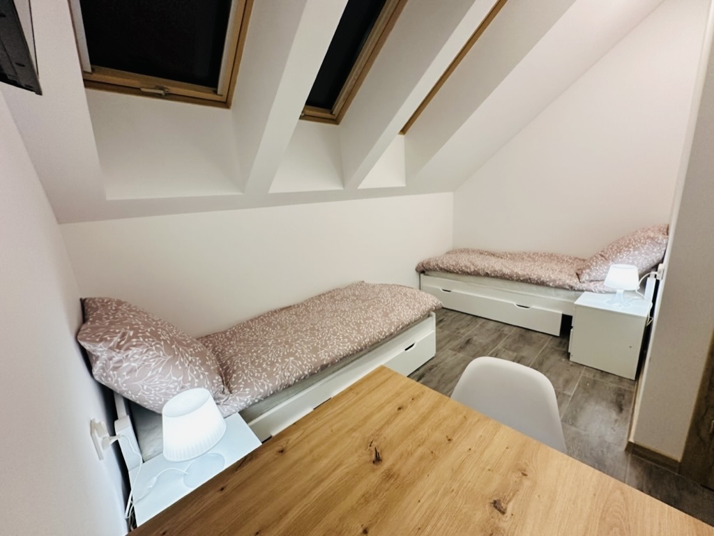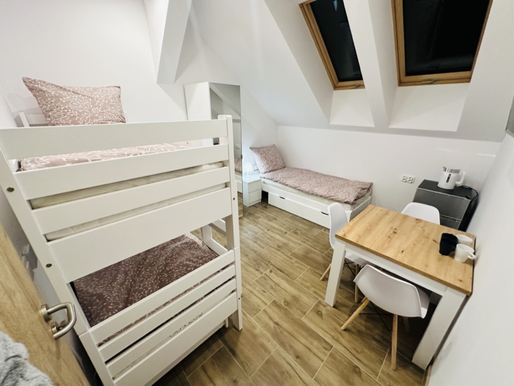 - łóżka parterowe (z możliwością połączenia w łóżka małżeńskie) i/lub piętrowe (z możliwością rozłożenia),