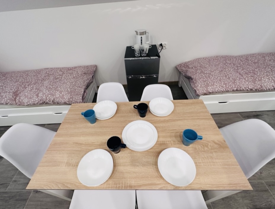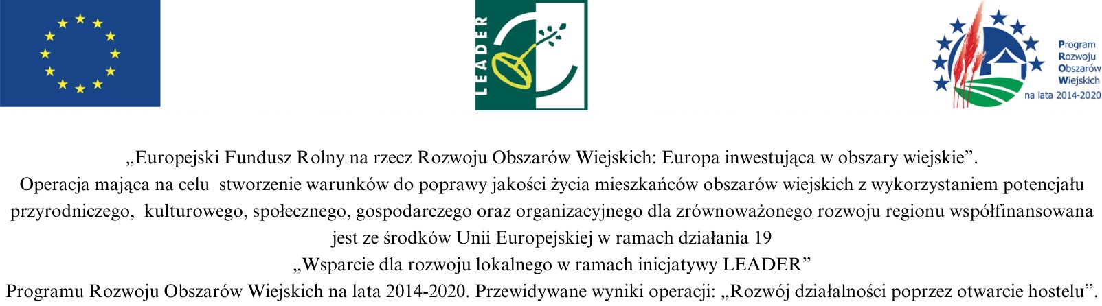 - W zależności od ustaleń, dostępne są także pościele, garnki, talerze, sztućce, szklanki, kubki itp.